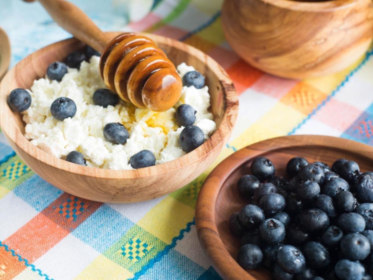| Krok 1: Zmieszaj serek z miodem i borówkami |